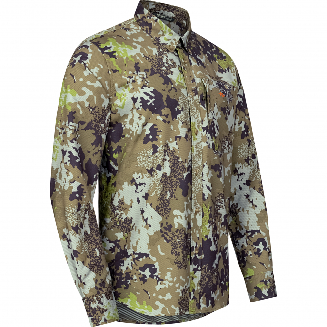 This highly breathable functional shirt ensures a pleasantly dry feeling on the skin, even during intense exertion. Whether you're on a sweaty stalk in warm weather or on a strenuous ascent, the quick-drying Airflow shirt absorbs moisture and wicks it away from the skin. The inside is equipped with a 3D mesh structure that creates space between the skin and the outer layer of fabric to ensure an optimal body climate. The outside of the double-woven material is smooth and robust. With button-down collar and chest pocket with zip. Colour: camouflage.