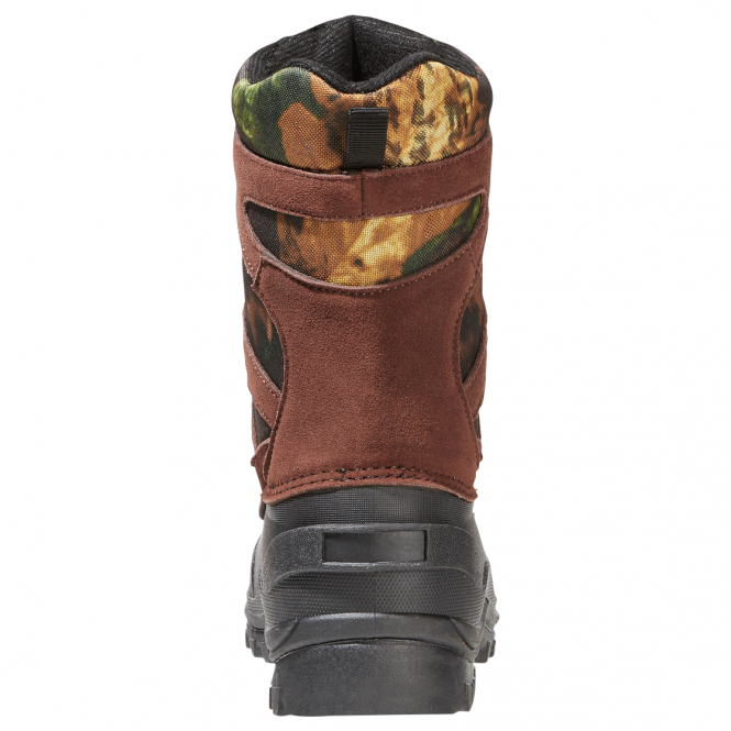 These waterproof and robust trekking boots feature sturdy eyelets and hooks that ensure a secure and snug fit. They provide reliable protection against cold and moisture during demanding outdoor activities. The durable sole offers good grip and longevity even on uneven terrain. The brown design with camouflage inserts combines functionality with a subtle, natural look – ideal for hunting and trekking.