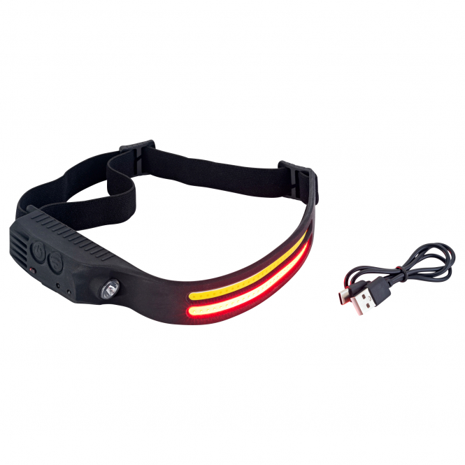 Super-bright high-performance headlamp with 6 light modes. With 2 COB light strips (white and red), a reading lamp and motion sensor. The headband is adjustable. With rechargeable 1200 mAh lithium battery. Charging time approx. 2 hours. Burn time: 2.5 hours on maximum setting. Weight: 100 g. Includes USB charger.