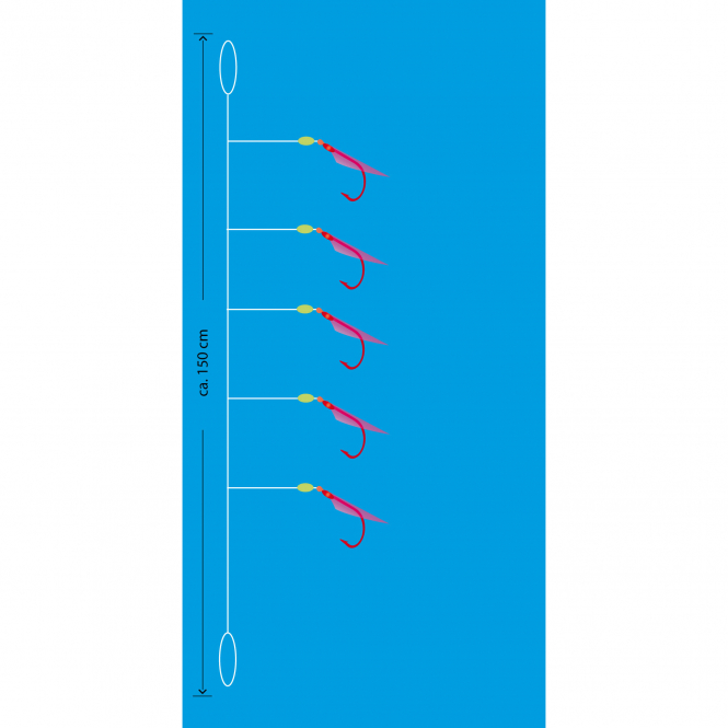 Herring leader with 5 hooks and real fish skin. Length: 150 cm. Contents: 1 piece.