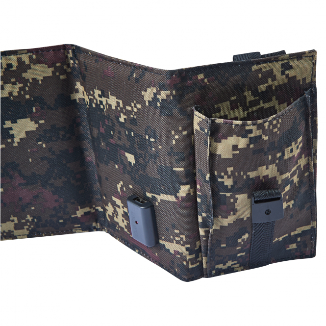 A powerful solar panel, perfect for camping, trekking and outdoor adventures. Easy to transport and store. Waterproof rating: IP65. Solar conversion rate: 18-19.5%. Max. power: 20W. Max. current: 1.3A. Output: USB 5V. Open circuit voltage: 6.5 V. Dimensions: 44.0 x 16.5 x 0.3 cm. Transport dimensions: 16.5 x 10.2 x 2.0 cm. Weight: 320 g.