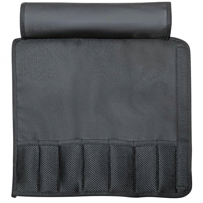Made from durable synthetic fibre, as used in high-quality tool bags, the roll-up bag impresses with its high resistance and long durability. The water-repellent and washable fabric allows for easy cleaning and hygienic use. Flexible mesh compartments adapt to different knife and tool handles and ensure versatile use.