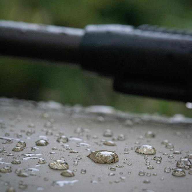 The entire front element can be rolled up if required, quickly transforming the bivvy into an open shelter with an unobstructed view of the water. The scope of delivery includes frame support poles, a lightweight groundsheet, sturdy pegs and a zip-up carry bag for transport. Visually, the khaki green material with green frame poles blends inconspicuously into the surroundings. Two rod holders at the front make it easy to store and change rods directly in front of the tent.