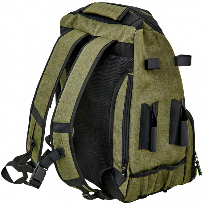 Plenty of storage space for anglers and hikers alike. Thanks to its ergonomic shape, which adapts perfectly to the back, and the added padded reinforcements, it is very comfortable and made for long hikes. With wide, padded shoulder straps secured by an adjustable strap at chest height. Many additional D-rings for attaching accessories. Dimensions: 32 x 23 x 45 cm.