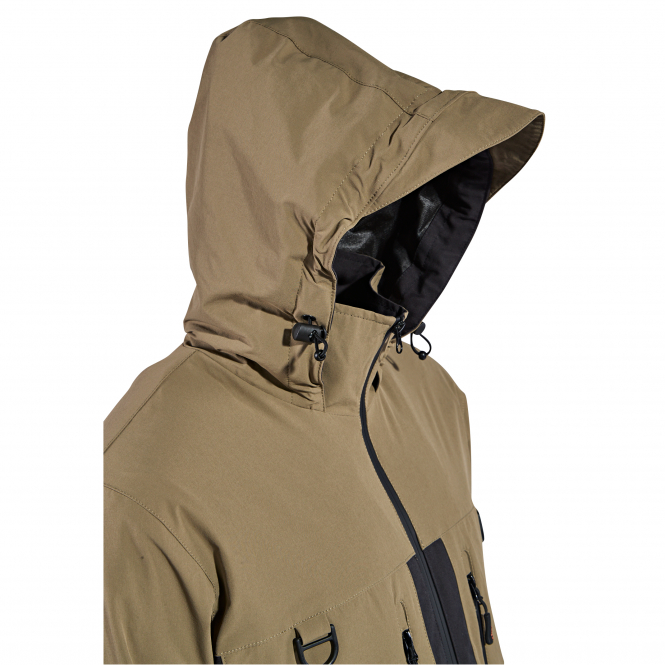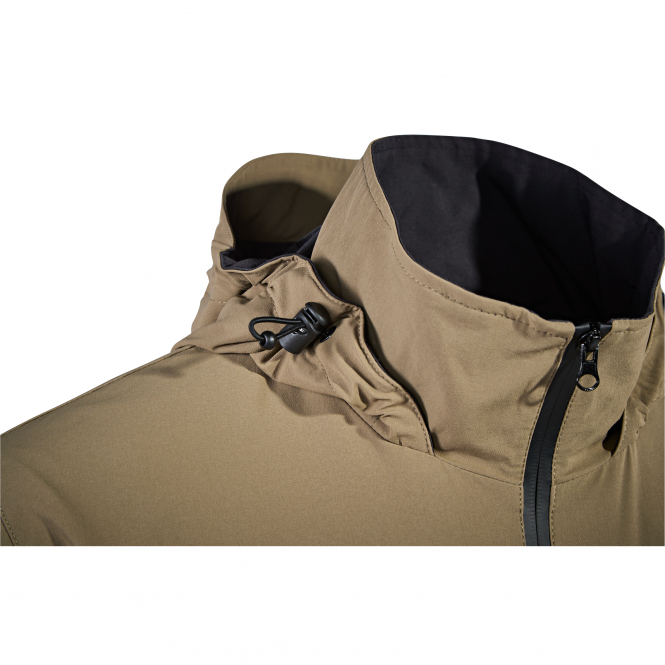 - High-closing stand-up collar with adjustable peaked hood for additional protection