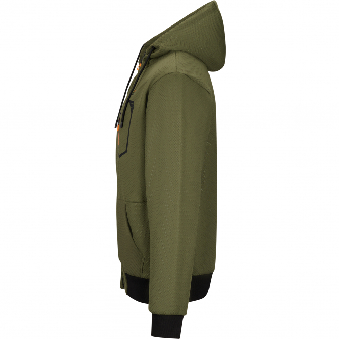 Sweatshirt jacket in a fine waffle look in olive with contrasting black. The contrasting orange breast pocket and zip fasteners make this sweatshirt jacket a real eye-catcher. Whether for fishing or hunting, combined with a shirt or shirt, it creates a variety of outfits. The soft material is stretchy and breathable for first-class comfort and freedom of movement. Ribbed design on the cuffs and hem, hood with drawstring. With il Lago embroidery above the breast pocket, in the colour: olive.