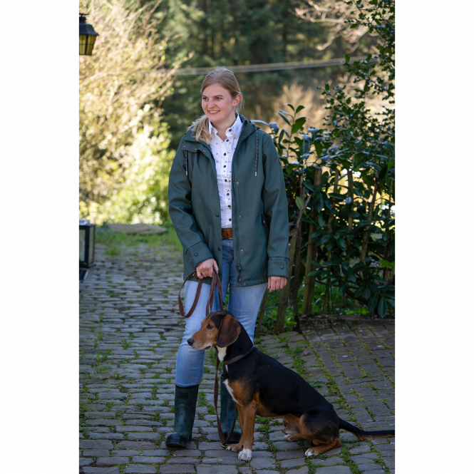 Two practical side pockets provide storage space for important small items, while the adjustable waist allows for a customised fit and increased comfort. The olive-coloured lining with a subtle deer motif adds a fashionable touch and makes the coat a real eye-catcher.