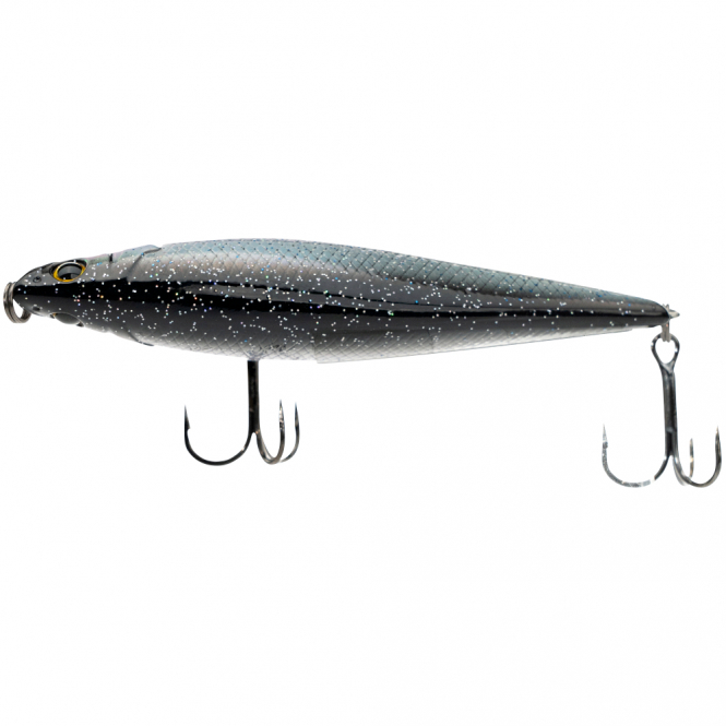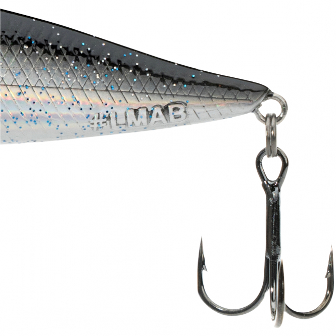 Unlike many other lures, the Dog Vibe 85F doesn't feature rattles. Instead, it contains small balance balls that produce a soft, subtle clacking sound. This makes it a "Low-Sound" hardbait. The black hooks and split rings prevent unwanted light reflections, keeping the lure discreet while still catching the fish's eye through its action and design. This combination of gentle movement, subtle appearance, and quiet sound makes the LMAB KØFI Dog Vibe 85F highly effective, even in challenging waters.