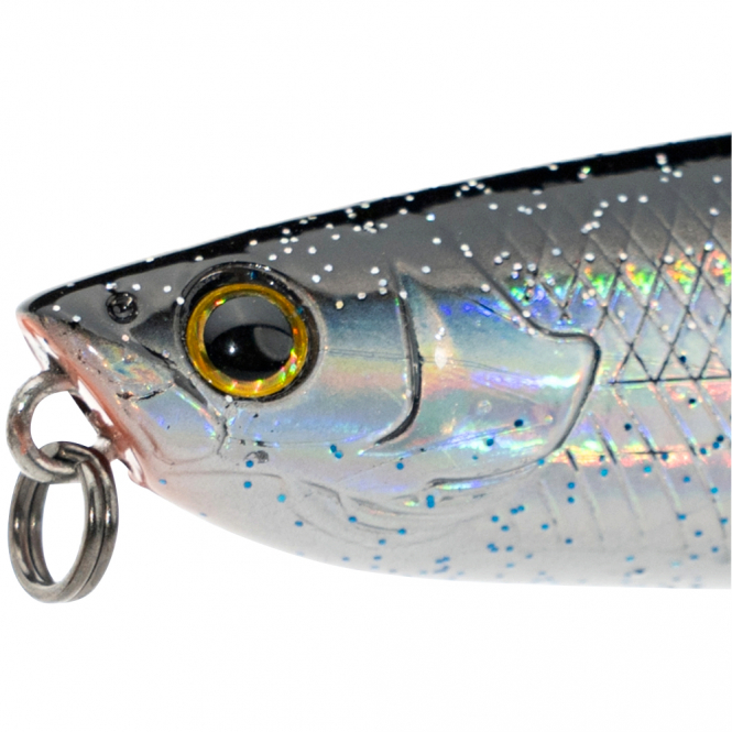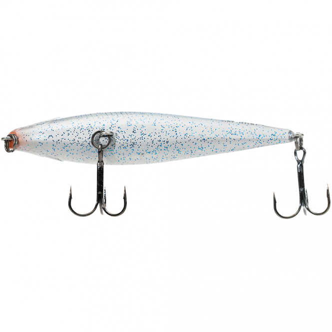 The LMAB KØFI Dog Vibe 85F is a stickbait specifically designed for the "Walk-The-Dog" technique. With this method, the lure is jerked in short movements across the water’s surface, creating a zigzag motion that attracts the attention of predators. The slim head profile and shallow head cavity cause small water splashes with every jerk, adding an extra element to entice fish.