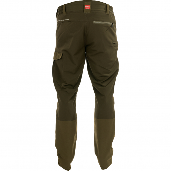 The Rando-T Evo trousers offer a combination of stretch and protection, with the hard-wearing stretch fabric providing a wide range of movement while ensuring a high level of comfort during active hunting activities. The material on the legs is reinforced with nylon oxford, which increases robustness. The two front pockets and the back pocket are equipped with durable Vislon zippers for longevity. In addition, the trousers have a new cargo pocket with several compartments that offers plenty of storage space. Triple stitching in critical areas contributes to stability, while a durable micro zipper adds to the functionality. The Ergonomic Design Concept™ (EDS) takes the body's anatomy into account, resulting in optimum comfort and ease of movement. The XTRETCH DYNAMIC fabric contains elastic fibers that have been specially developed for demanding physical activities and ensure comfort during hunting and other outdoor activities. The pants are equipped with YKK zippers, which are known for their reliability. The HARTWARE concept behind the product supports thermal regulation so that neither freezing nor sweating affect comfort. Colour: Dark Olive.