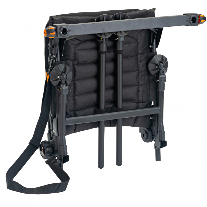 For transport, the front legs can be fixed under the seat to save space, keeping the chair compact. The water-repellent seat cover and a removable shoulder strap facilitate handling and transport, making the Contest Feeder Chair a reliable companion for mobile feeder anglers.