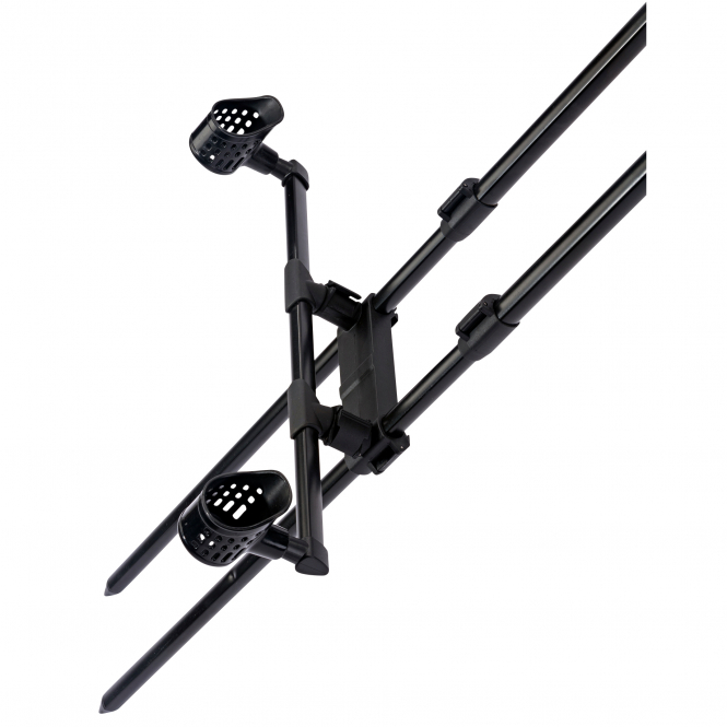 The rod rests can be adjusted to four angle positions (45°, 90°, 135° and 180°) using a clip system, allowing precise adjustment to the respective fishing situation. Special cups with a diameter of 50 mm securely fix the handle ends and protect against the rods being pulled out or tipping over during hard river bites.