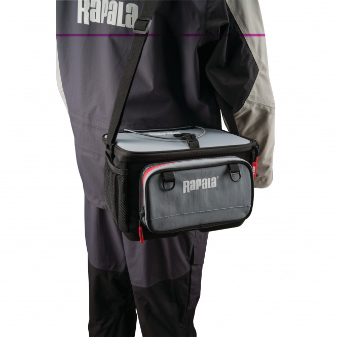 With waterproof EVA base, tackle bungee on top and adjustable shoulder strap. Holds 4 size 3600 boxes (2 boxes included). Dimensions: 35 x 25 x 22 cm.