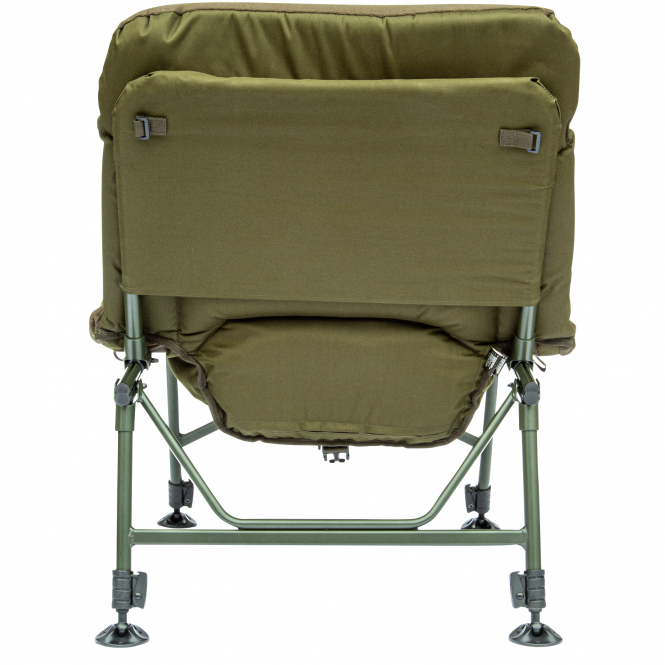 SolarCam offers anglers an ergonomic mattress. Its supportive yet soft ‘shell’ is anchored above the armrests, so that these are also generously padded. There are no draughts around the lower back, which is a great advantage in the colder months.