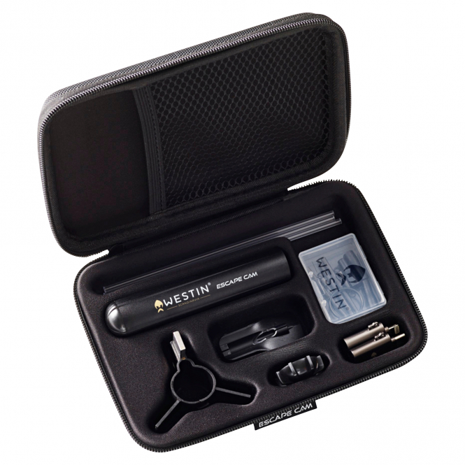 The Westin Escape Cam is a shockproof, lightweight underwater camera for fishing, specially designed for casting and trolling. Weighing only 40 g, it can be easily integrated into active fishing techniques and still delivers high-quality Full HD recordings. Thanks to its waterproof rating of up to 200 m, it is suitable for both freshwater predator fishing and marine use.