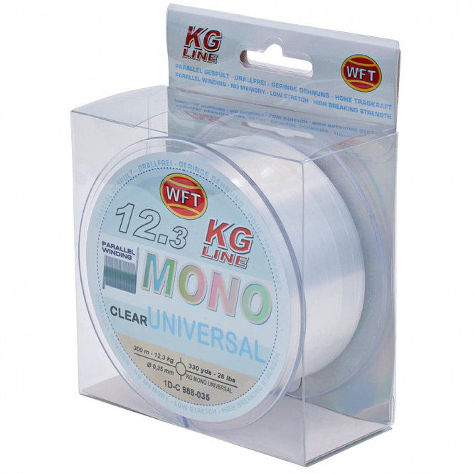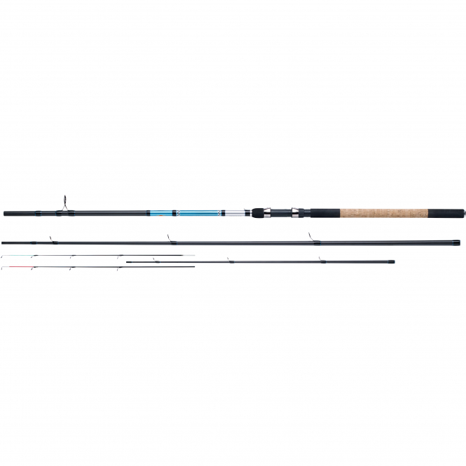 The set consists of a B reelB : RYOBI Cynos III 6500 Feeder with 5+1 ball bearings, line capacity: 200 m/0.20 mm and a weight of 395 g. B RodB : WFT Fast Feeder Special with a length of 360 cm, casting weight: 20–150 g, transport length: 127 cm and a weight of 305 g. B LineB WFT Round Dynabraid G4, colour: green, length: 150 m, Ø: 0.16 mm, breaking strain: 16 kg. B LineB WFT KG Mono Universal, colour: transparent, length: 300 m, Ø: 0.28 mm, breaking strain: 7.6 kg.