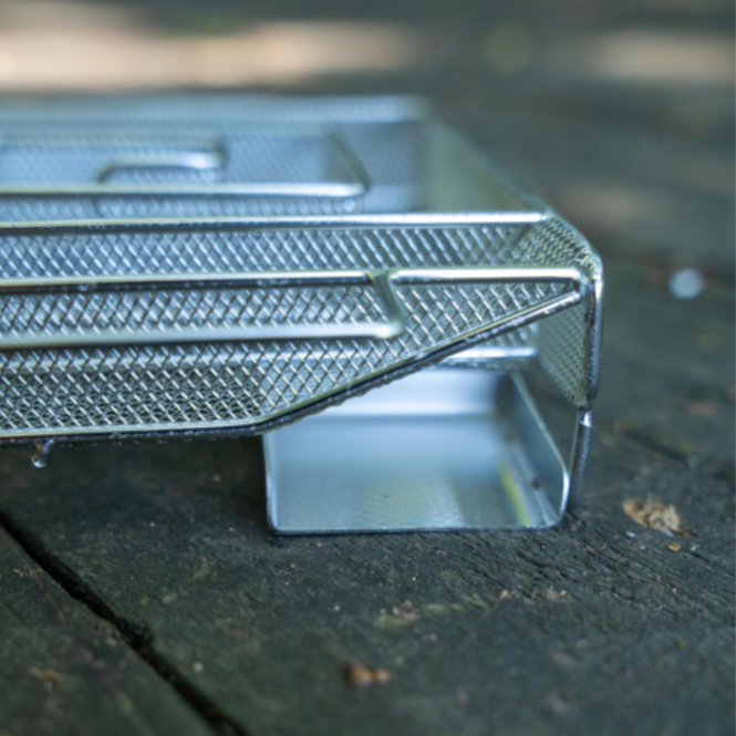 The cold smoke generator is made of robust, food-safe metal and is fully designed for use in the food industry. The stable spiral-shaped grid construction ensures good ventilation of the smoking material and remains dimensionally stable even with repeated use. The open mesh structure allows air to circulate evenly through the smoking chips, enabling controlled and constant smouldering.