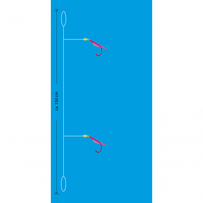 Herring leader with 2 hooks and real fish skin. Length: 150 cm. Contents: 1 piece.