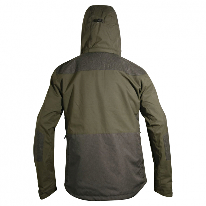 The Aran-J Jacket is specifically designed for active hunters, combining durable materials with well-thought-out features. The tough Oxford nylon is reinforced with 600D ripstop fabric on the front and back, while Blintex inserts on the shoulders and elbows offer extra protection in dense brush. Elastic side panels with Xtretch Dynamic technology ensure excellent freedom of movement and a comfortable, tailored fit. The waterproof and breathable Osmotech Plus membrane provides reliable protection against moisture while maintaining a pleasant internal climate. The ergonomic EDS (Ergonomic Design System) supports natural body movements and enhances wearing comfort, while the Hartware concept optimizes heat regulation for an ideal body temperature. Practical features include hidden multifunctional pockets, handwarmer pockets, a spacious game pocket with a rear zipper, and a detachable hood—making this jacket highly versatile. A Magnetic Port on the right sleeve cuff accommodates magnetic devices used to control electronic dog collars. Inside, you'll find a zippered chest pocket and a mesh pocket designed to hold a safety vest (not included). Colour: dark olive.