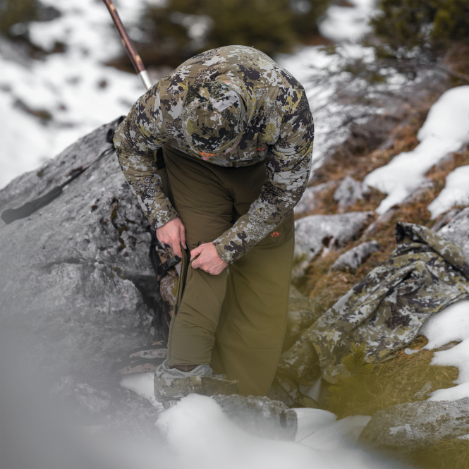 The full-length side zipper makes it easy to put on and take off without having to remove your boots. Knee and seat inserts made from highly elastic fabric offer plenty of freedom of movement so that you can move freely even in demanding terrain. These trousers will keep you warm and agile even in cold conditions.