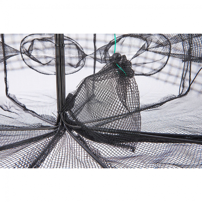 This practical trap is ideal for catching crabs and shrimps. It is also extremely easy to transport, as the zipper makes it easy to open and close. The compact mesh size of 4 mm also makes it easy to catch bait fish.