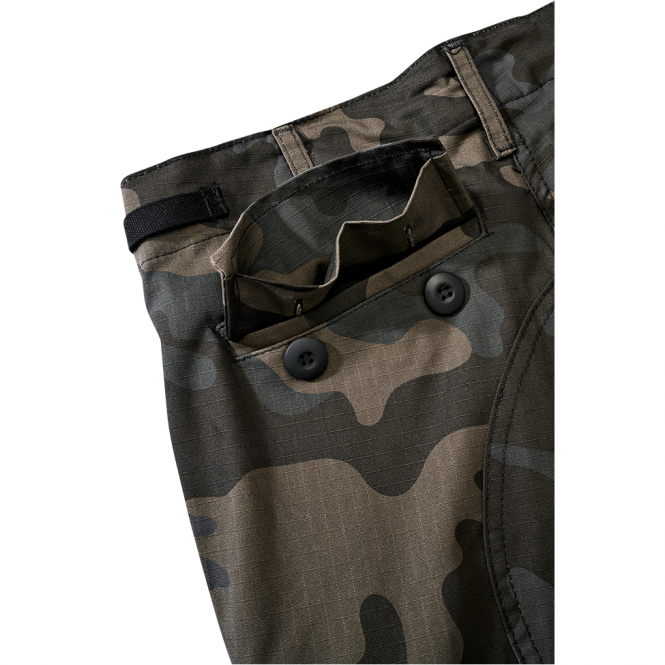 Robust trousers made from easy-care ripstop material. The waist width is adjustable. With reinforced knees and seat area. Equipped with 2 side pockets, 2 back pockets and 2 side cargo pockets. Material: 100% cotton.