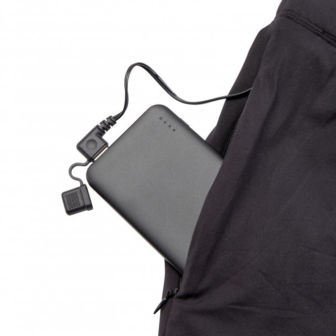 Pants with integrated heating system. Quick-drying and anti-bacterial. The three heat levels can be regulated using an on/off button. Heating elements are located on the thighs. The pants have a pocket for the power bank. Deerhunter recommends the use of a 5,000 mAh power bank. Machine washable. Incl. laundry bag. Also suitable for women. Colour: black.