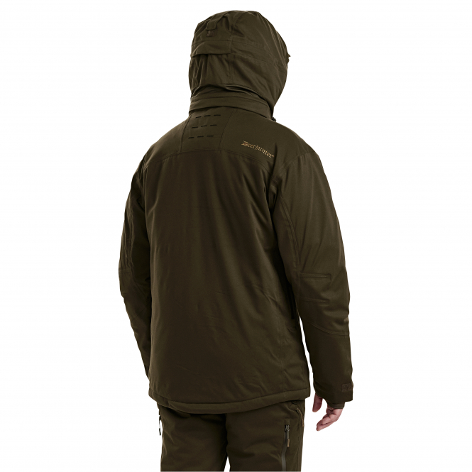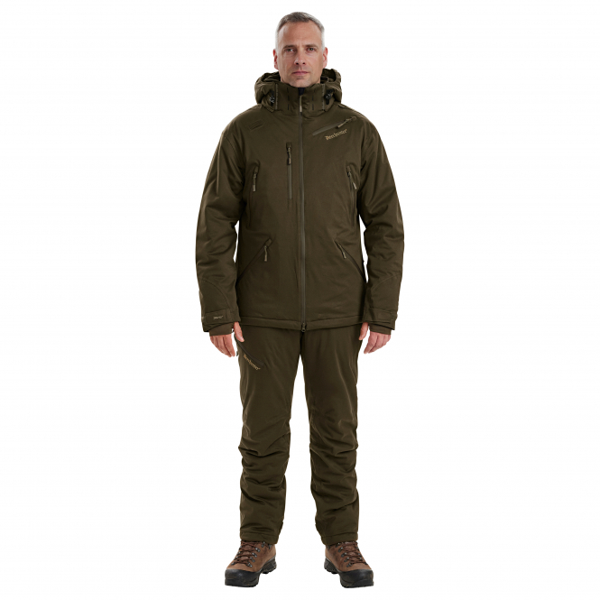 The Excape Winter Jacket offers everything you could wish for in a lightweight, breathable jacket: from the detachable hood to the concealed face mask in the collar. As well as being waterproof, windproof and water repellent, the jacket also has waterproof zips for the radio pocket, chest pocket, two front pockets, two hand warmer pockets and a two-way YKK zip in the centre. Adjustable cuffs and an adjustable drawstring at the lower jacket hem ensure a truly customised fit. Should the weather be worse than expected, that's no problem with the Excape winter jacket. Not only is it fully insulated, it also has additional padding at the back to keep you warm in the morning and evening on cold hunting days. But ventilation is also important. That's why this jacket has waterproof ventilation zips at the front of the collar, under the arms and at the back of the neck. A loop for attaching the radio, an elasticated loop for the antenna, pre-shaped elbows and storm cuffs round off the features of this hunting jacket perfectly.