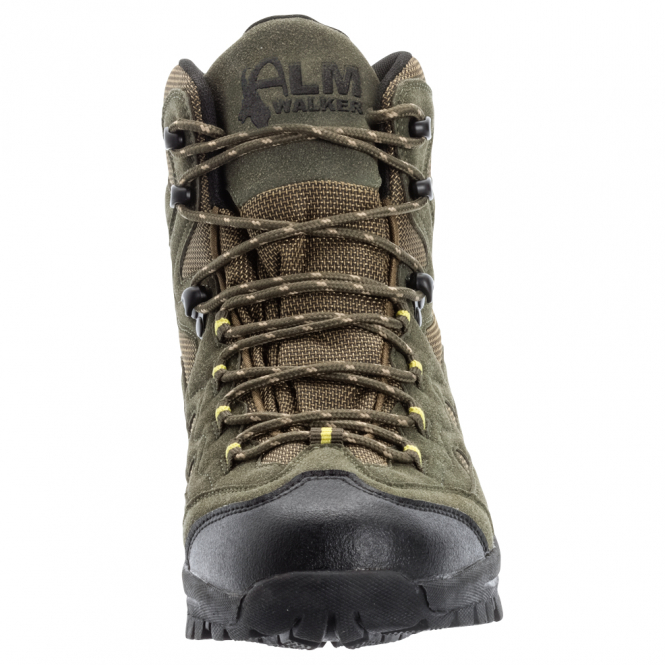 High-quality, modern and robust outdoor boots. The boot is the perfect companion, whether for hunting or for long hikes in your free time. With padded mesh fabric for a comfortable fit. The high shaft protects the ankle, providing excellent stability on uneven terrain and preventing buckling. The strong profile sole offers secure grip even on stony paths. With Almtex® membrane. Color: khaki with yellow accents.