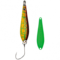 > Show all If you are looking for effective predator fishing lures, you should definitely take a look at spoons. Flashers, also known as spoons, are lures made of metal and equipped with 1-2 treble hooks. Their tumbling motion creates pressure waves in the water, imitating the natural movement of a prey fish. The metal of the lure also creates light reflections that attract the attention of predatory fish.