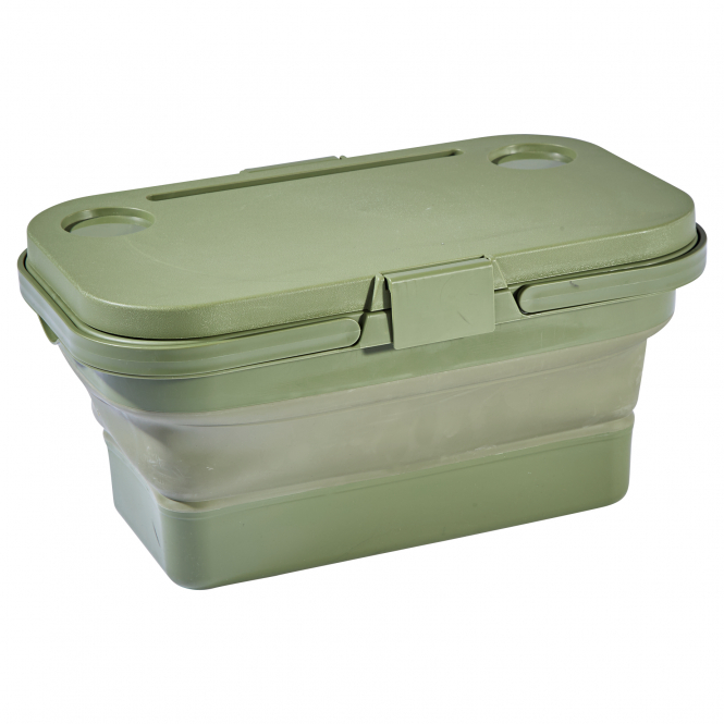 This practical folding bucket is a real all-rounder in the field. Not only does it serve as a sturdy container for food, feed or utensils, but thanks to its clever design, the lid can also be converted into a compact folding table in no time at all. The perfectly fitting lid closes the bucket securely and also serves as a stable table surface – ideal for a quick break or preparing equipment. Versatile. Space-saving. Well thought-out.