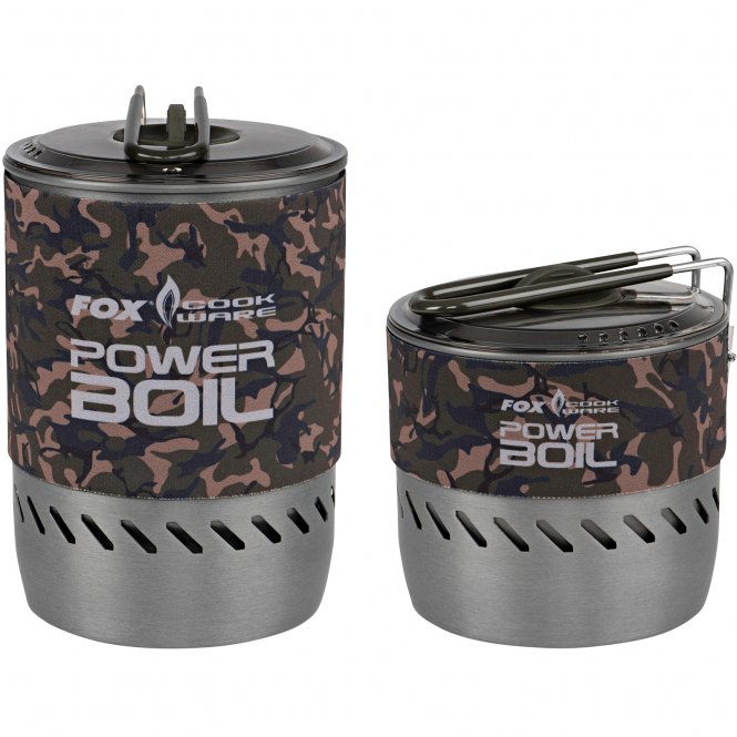 These pans are designed to efficiently conduct the heat from the Fox infrared cooker, providing a more energy-efficient method of cooking food and boiling water. This can save you time and money in the long run by reducing cooking times and energy costs. The pans are made from hard anodised aluminium and feature a heat exchange system that connects directly to the Fox infrared cooker for maximum efficiency. The Fox Camo neoprene cover can be kept on during use to improve insulation and the collapsible handle keeps the lid in place during transport. The pans are available with a capacity of 0.65 l and 1.25 l. With the 1.25-litre version, the infrared cooker can be stored in the pot together with a 230-gram gas cartridge, which allows for compact storage. Alternatively, a larger 500-gram gas bottle can be used for storage. With the 0.65-litre version, the infrared cooker can be stored in the pot or a 230-gram gas bottle can be used for compact storage.
