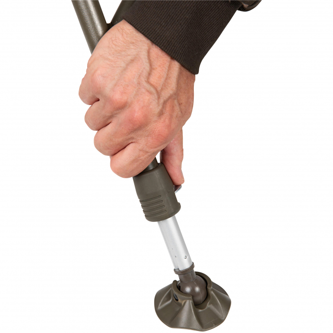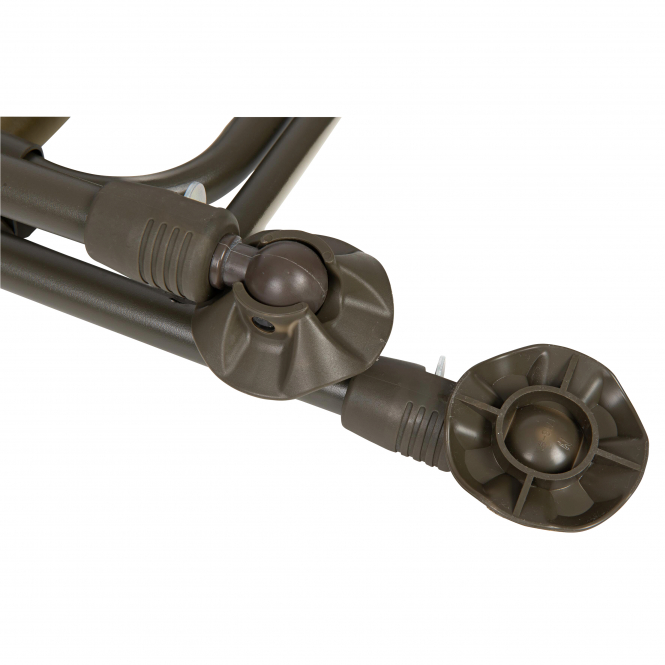 All four legs are height-adjustable, allowing for optimal adaptation to different terrain conditions. Ball-jointed mud feet provide additional stability, even on soft or uneven ground.