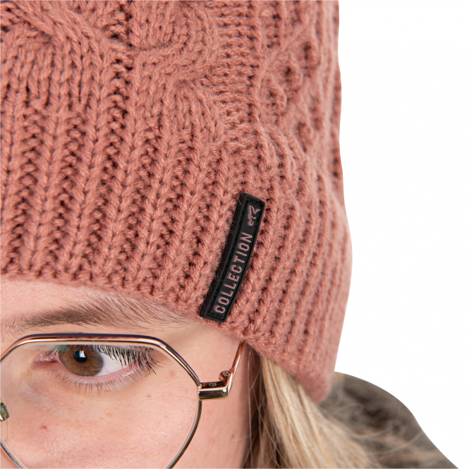 Fox Ladies Knitted Bobble Hat Women (Dusty Rose Pink)