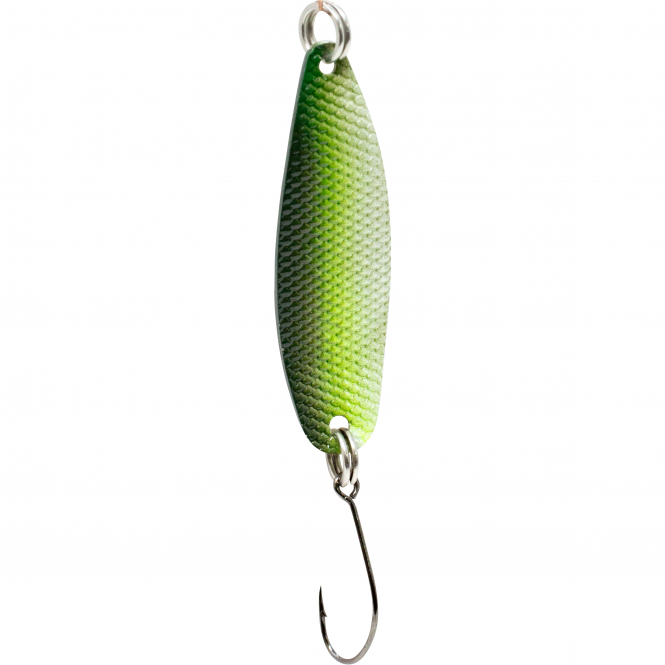 The Hammer Spoon impresses with its striking, wide shape and seductive action, which activates even sluggish trout. Strong light reflections and intense pressure waves appeal to both the eye and the lateral line organ of the fish.