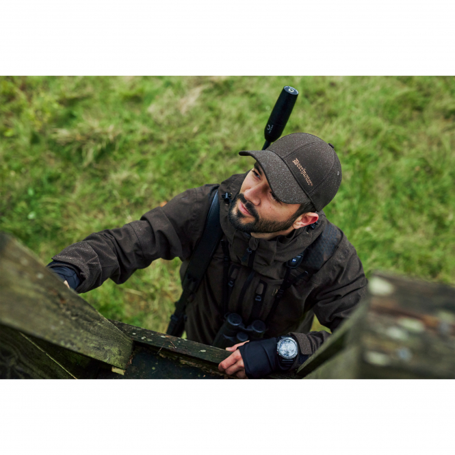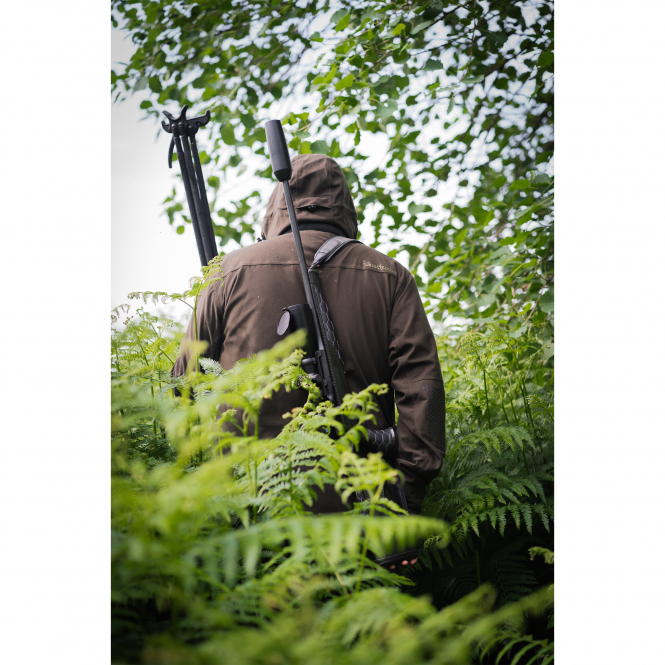 The Game Pro Light Jacket offers optimal weather protection with its Deer-Tex® Performance Shell membrane. Practical pockets, rubberised shoulder and elbow sections, and a cleaning cloth for visors ensure functionality. Adjustable cuffs and a mesh lining provide comfort. Colour: brown.