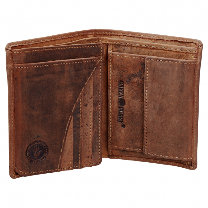 The Greenburry wallets in vintage style with animal embossing delight with their trendy look and functional handling. The high-quality genuine leather wallets offer plenty of storage space for banknotes, cards, driving licence, ID card and small change. With the Greenburry Vintage Animal wallets you always have all the important things of everyday life tidily and safely stored with you. Convinces further by long durability. 7 card pockets, 2 side pockets, 4 pockets, 1 window pocket and 1 change pocket. Dimensions: 9.5 x 12.5 x 2.5 cm. Colour: saddle brown.
