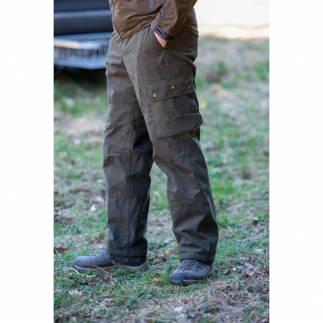 Padded thermal trousers that live up to their name. The Sibiria features spacious, buttoned outer pockets that are perfect for hunting licences or ammunition, as well as a buttoned back pocket and two slit pockets. The raised back and stretch panels ensure maximum comfort. The waistband is adjustable with an elasticated insert. Colour: olive.