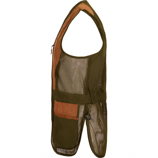 Elegant and practical shooting vest made of cotton. The vest is the ideal companion, both at the shooting range and in the field. It has 2 spacious patch pockets that offer plenty of space for ammunition and thus ensure high capacity. The elasticated waistband guarantees a high level of comfort and ensures a perfect fit. Mesh lining on the back and front ensures breathability and increases comfort even during longer periods of use. Colour: green/beige.