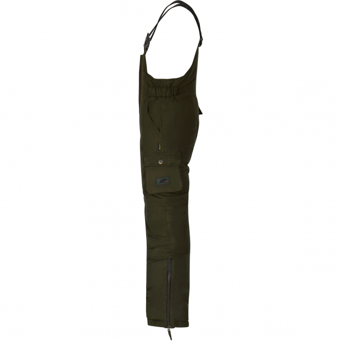 High-quality men's hunting trousers made from genuine duck down. These dungarees are very light, soft and supple. The numerous, ultra-fine branches trap a lot of air and thus store body heat. Down forms a highly effective insulating layer, making these trousers a must-have for outdoor enthusiasts in the cold winter months. They are breathable and ensure a comfortable body climate. The 10,000 LagoTex membrane protects in all weather conditions, and the high breathability of 5,000 g/m²/24h ensures perfect air circulation. Only down from certified, species-appropriate husbandry is used (Responsible Down Standard certificate). The dungarees are suitable for extreme weather conditions and feature a wind protection strip with zip. Equipped with 2 slit pockets, a side pocket with button and a back pocket that can also be closed with a button. The elastic straps are adjustable. The trouser legs can be opened with a zip, making them easy to put on and take off with shoes. Hem cuffs prevent the trouser legs from riding up. With il Lago rubber badge on the side of the pocket. Colour: olive.