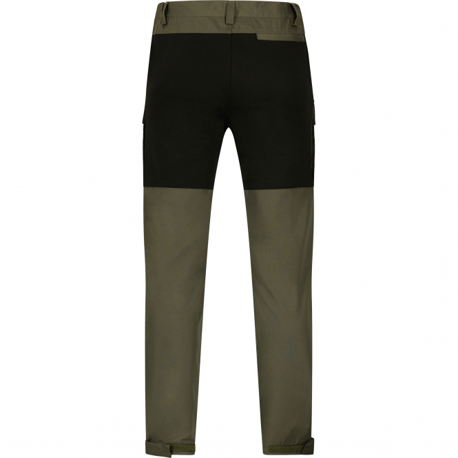 Functional and comfortable outdoor trousers made from robust material with water-repellent and breathable properties for an ideal wearing climate. Thanks to the high-quality materials, the trousers are extremely durable and particularly abrasion-resistant, making them the ideal companion in the field. Reinforced knee and seat areas provide additional protection and durability during demanding movements. Equipped with practical slit pockets, thigh flap pockets and a back pocket with zip, the trousers offer plenty of storage space for equipment and personal items. The leg ends are adjustable with Velcro so that they can be individually adjusted and prevent dirt or cold from getting in. Colour: olive.