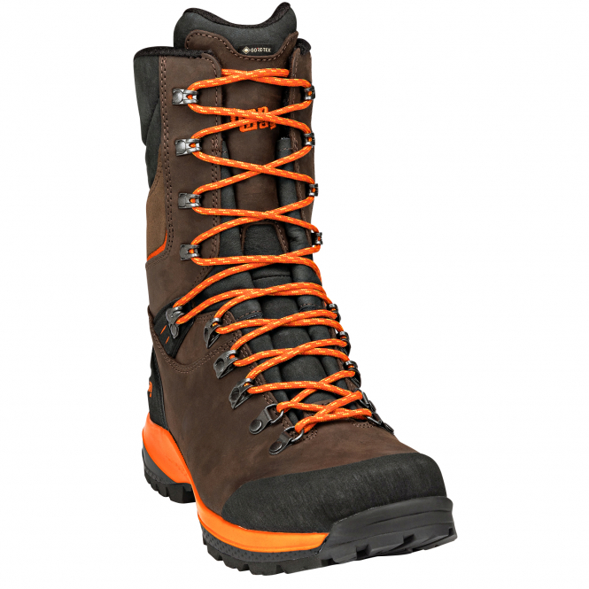 With waterproof and breathable GORE-TEX membrane, Vibram Trekking SF outsole, TPU protective caps in the heel and toe areas and flexible 2-zone lacing with hook fasteners. Colour: brown.