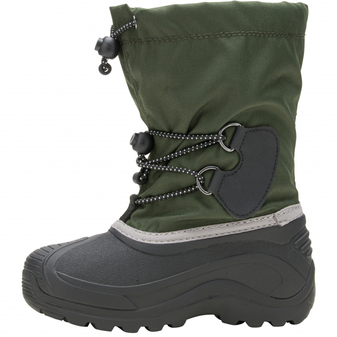Designed for everything from building snowmen to snowshoeing, this warm winter boot offers protection and durability all winter long. Featuring seam-sealed, waterproof construction, an adjustable snow collar and Easy-Grab Lace Lock to ensure a snug fit. Adjustable snow collar and Easy-Grab Lace Lock. Removable 6 mm Zylex® lining (97% recycled content). Waterproof and lightweight synthetic rubber upper. PIONEER synthetic rubber outsole and deep, self-cleaning lugs for excellent traction on snow. Waterproof and lightweight synthetic rubber upper. Comfortable down to -32°C. Height: 23 cm. Colour: dark green.