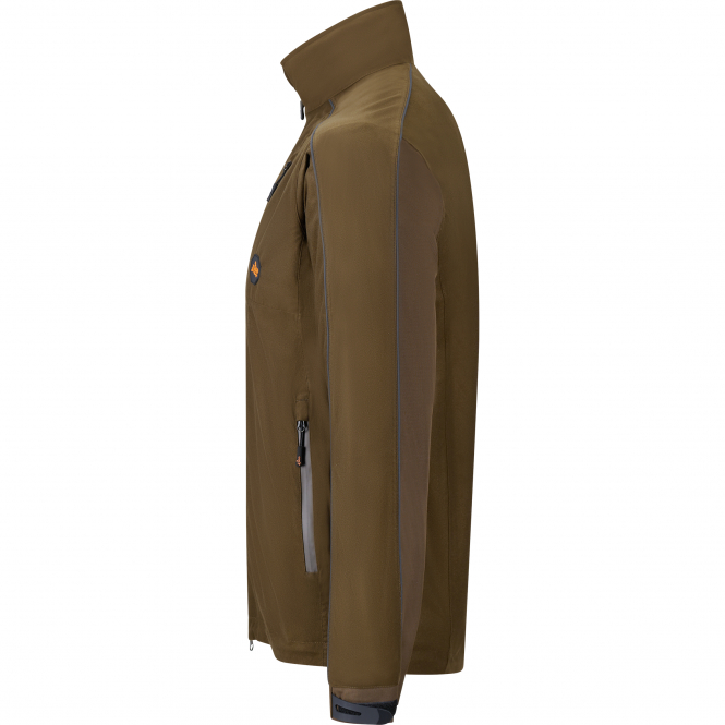 Whether you are stalking on mild spring days or sitting in the cool of a summer night, this jacket can be worn anytime. Since the jacket has a very sporty cut, it also looks good when you are not hunting. The windproof and waterproof Lagotex® membrane (hydrostatic head: 10,000 mm, breathability: 5000 g/m²/24h) ensures optimal weather protection. The outer material is particularly quiet, making the hunting jacket suitable for both stalking and sitting game. The high collar offers additional protection for the head and the sensitive neck area. The lightly lined jacket has a two-way zip. The width of the jacket's waistband can be adjusted using the elasticated band. The jacket has a total of five pockets. Thanks to the waterproof pocket zips, technical equipment such as radios and tracking devices can also be stored safely. On the outside, two breast pockets and two hand pockets provide storage space for your hunting equipment. Both breast pockets are equipped with an antenna opening. On the inside, there is a pocket with a zip for important documents. Colour: olive with contrasting orange zip tapes. 5 black zip tapes for changing are provided in a separate bag.