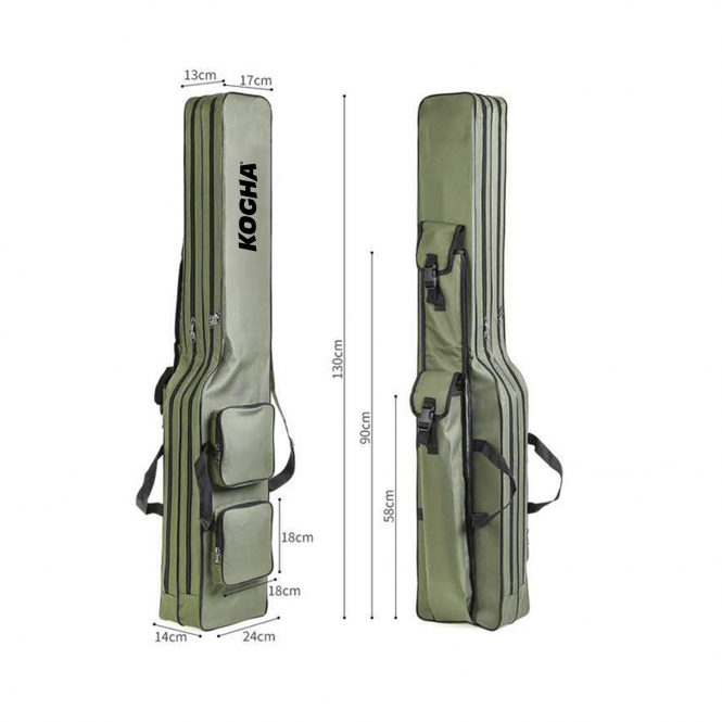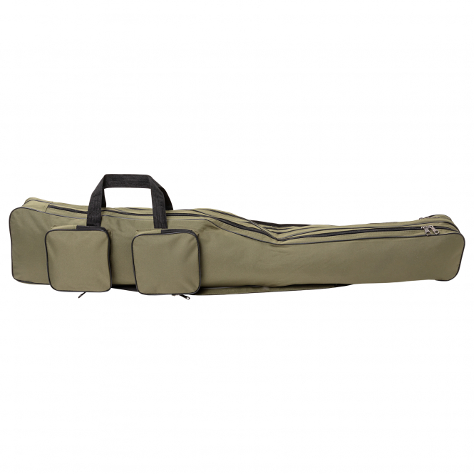 Practical Rod holdall with 2 main compartments and 5 external patch pockets. Offers sufficient storage space for mounted rods and lots of accessories such as landing nets, rod holders and accessory boxes. With carrying loops and 2 padded and adjustable shoulder straps. Length: 130 cm. Outer pocket dimensions: 2 x 32 x 9 x 3 cm; 1 x 84 x 9 x 2 cm; 2 x 35 x 12 x 2.5 cm. Colour: olive.