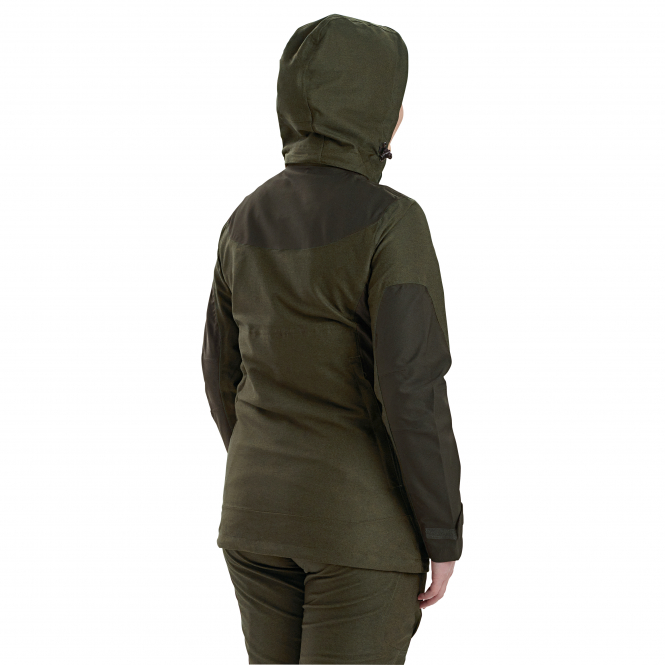 The Deerhunter Lady Chasse jacket offers a range of features for outdoor adventures. It is equipped with a waterproof two-way zip, detachable hood and multiple pockets. The adjustable hem, Velcro cuffs and pre-shaped elbows allow for a custom fit. Colour: olive.