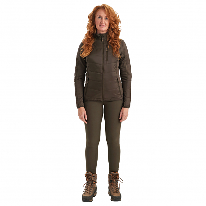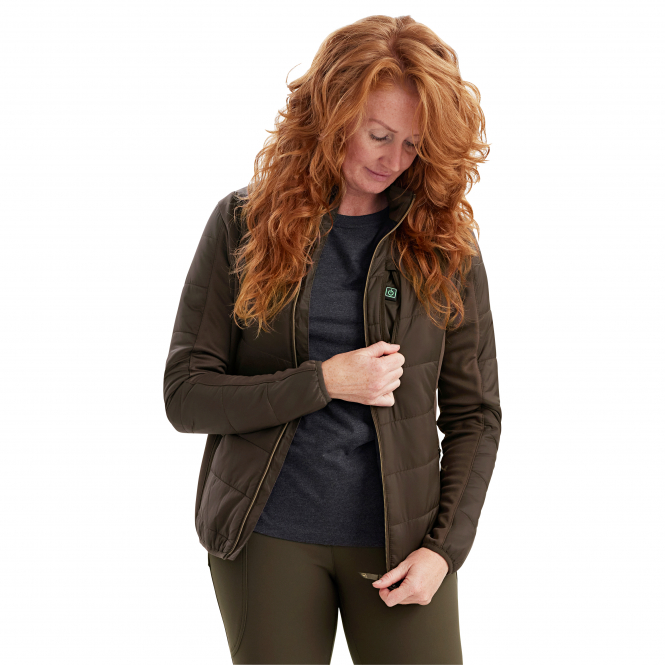 Die wattierte Jacke der Serie Lady Heat von DEERHUNTER kombiniert innovatives Material mit Function-first-Design und Textiltechnologie. Sie bietet Jägerinnen optimalen Komfort und schützt vor Wärmeverlust. Auf Knopfdruck wird bei kaltem Wetter die Heizfunktion aktiviert. Die Jacke ist Teil der hochtechnologischen HEAT-Serie von DEERHUNTER mit einem intelligent integrierten Wärmesystem, das mit einem leicht erreichbaren Schalter in der Brusttasche aktiviert wird. Die Temperatur ist einstellbar und wird an der integrierten LED-Leuchtanzeige angezeigt. Zum Waschen kann die Powerbank mühelos gelöst und entfernt werden. Die Jacke verfügt dank der abgesteppten Bereiche vorne und hinten sowie in den Ärmeln über ein gutes Isolationsvermögen. Der 2-Wege-Stretch sorgt für hohe Flexibilität. Damit ist sie perfekt sowohl bei kalten Wetterverhältnissen als auch bei günstigen Jagdbedingungen. Farbe: Braun.