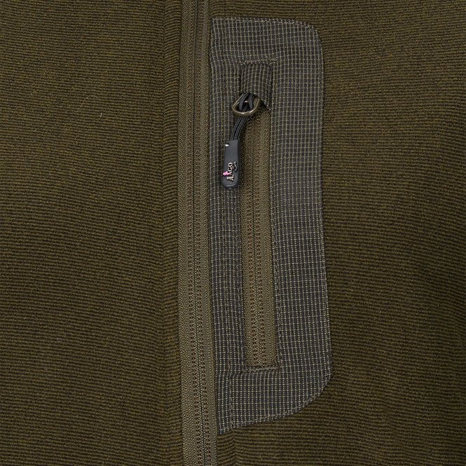 Wonderfully warm for cold days. The stand-up collar with chin guard protects against wind and cold. The jacket has two practical fleece-lined pockets. Colour: olive.