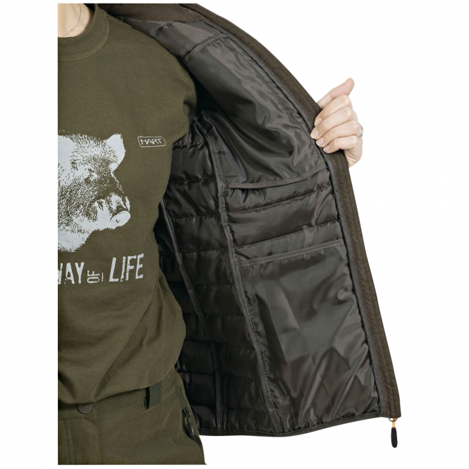 The vest is made of warm HDI 80 padding and can be worn either as an additional layer of insulation under any jacket in the collection or as outerwear. Three zipped pockets provide practical storage space. Colour: brown.