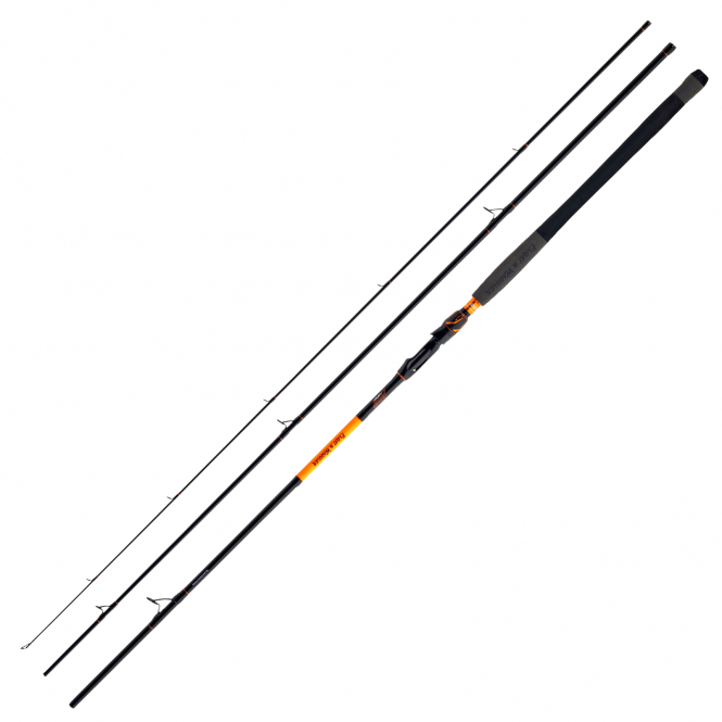 Made from highly compressed 30T carbon material, the semi-parabolic blank is a real powerhouse. Equipped with high-quality K-type guides, a secure reel seat and an EVA handle.